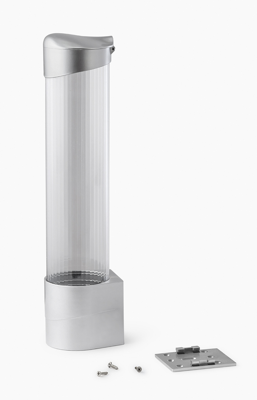 Стаканодержатель на шурупах. Цвет серебряный. На 50 стаканов, с диаметром 70мм. Корпус выполнен из высококачественного поликарбоната, благодаря чему достигается высокая степень прозрачности. В комплекте: стаканодержатель, крепление, саморезы. В коробке 32шт. Размер индивидуальной упаковки: 100х87х413мм