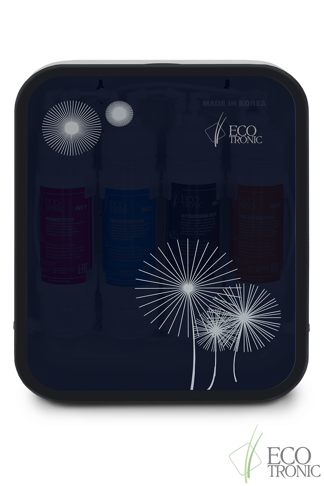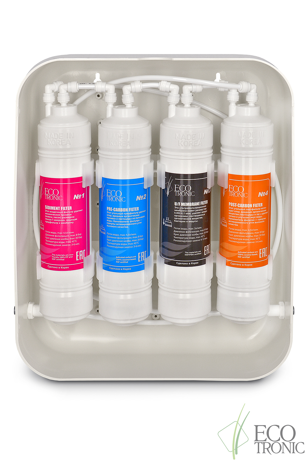 Цена этих систем зависит, в первую очередь, от количества фильтров. Мы предлагаем системы с 2 и 4 фильтрами, причем каждый фильтр осуществляет свой тип водоочистки. Обратите внимание, что все фильтр-системы, которые производятся на сегодняшний день, могут относиться к одному из двух типов – проточные и с обратным осмосом