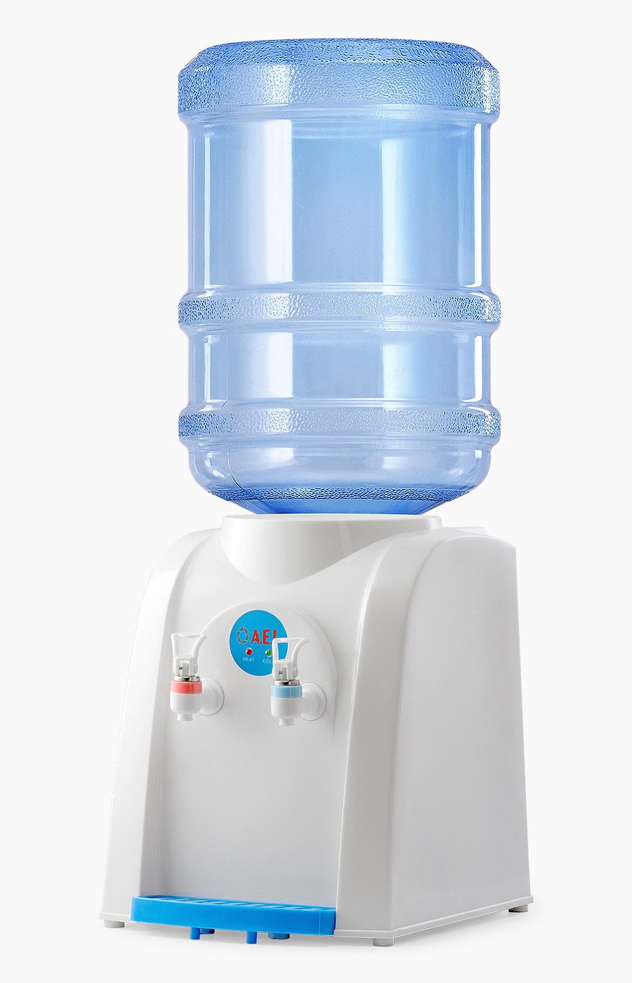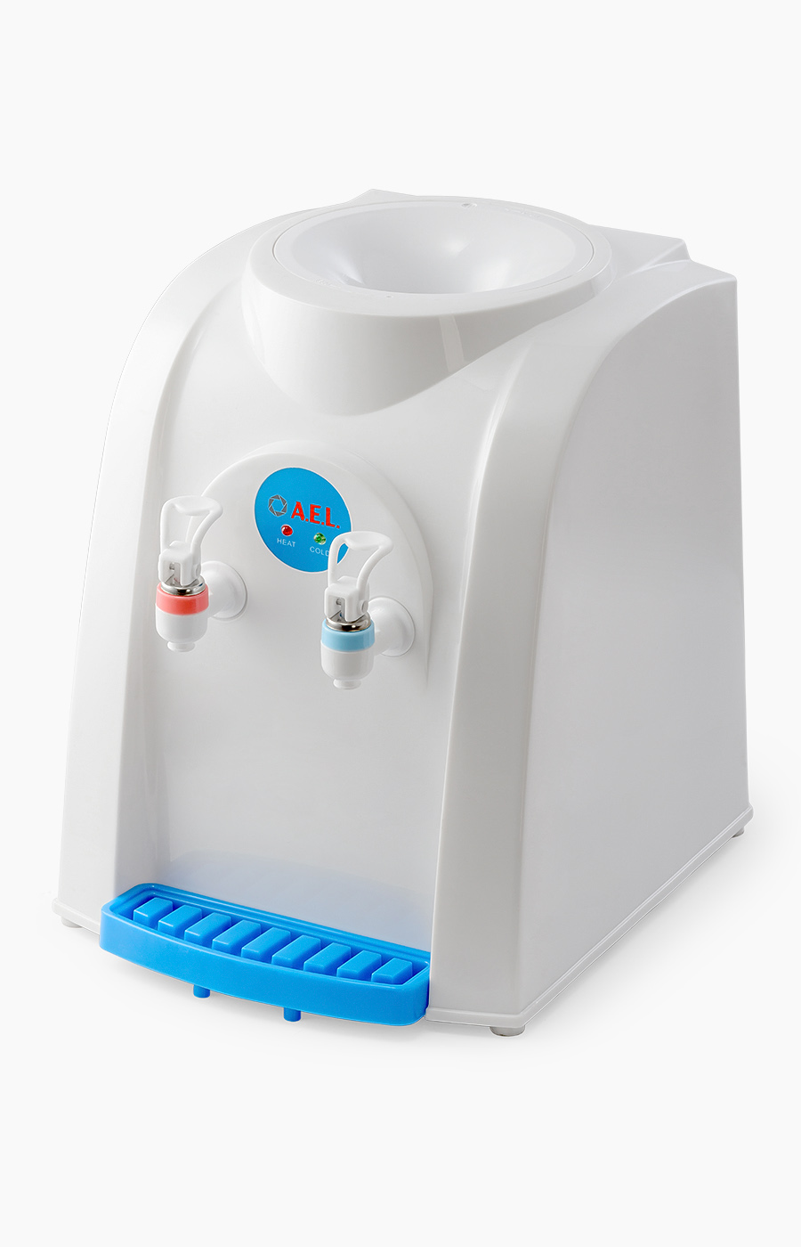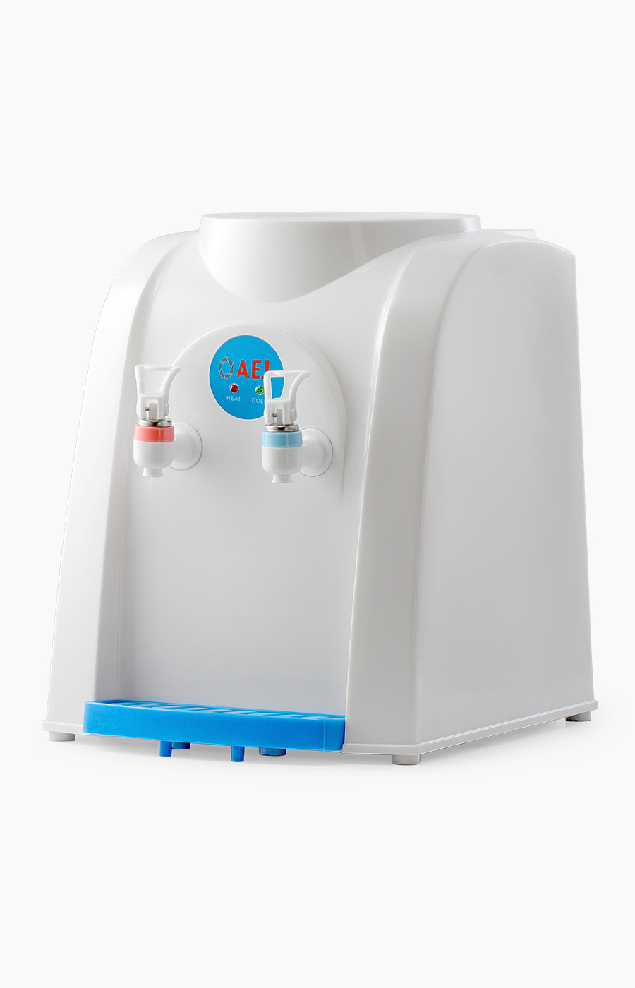 Настольный кулер для воды с электронным охлаждением и верхней загрузкой бутыли. Имеет компактные размеры, благодаря чему легко устанавливается на стол или тумбочку не загромождая пространство. Оснащен двумя механическими кранами типа "нажим рукой" для подачи горячей и охлажденной воды. Кулер подходит как для домашнего, так и для офисного использования, на предприятиях и учреждениях.Расстояние от краника до лотка 15см.