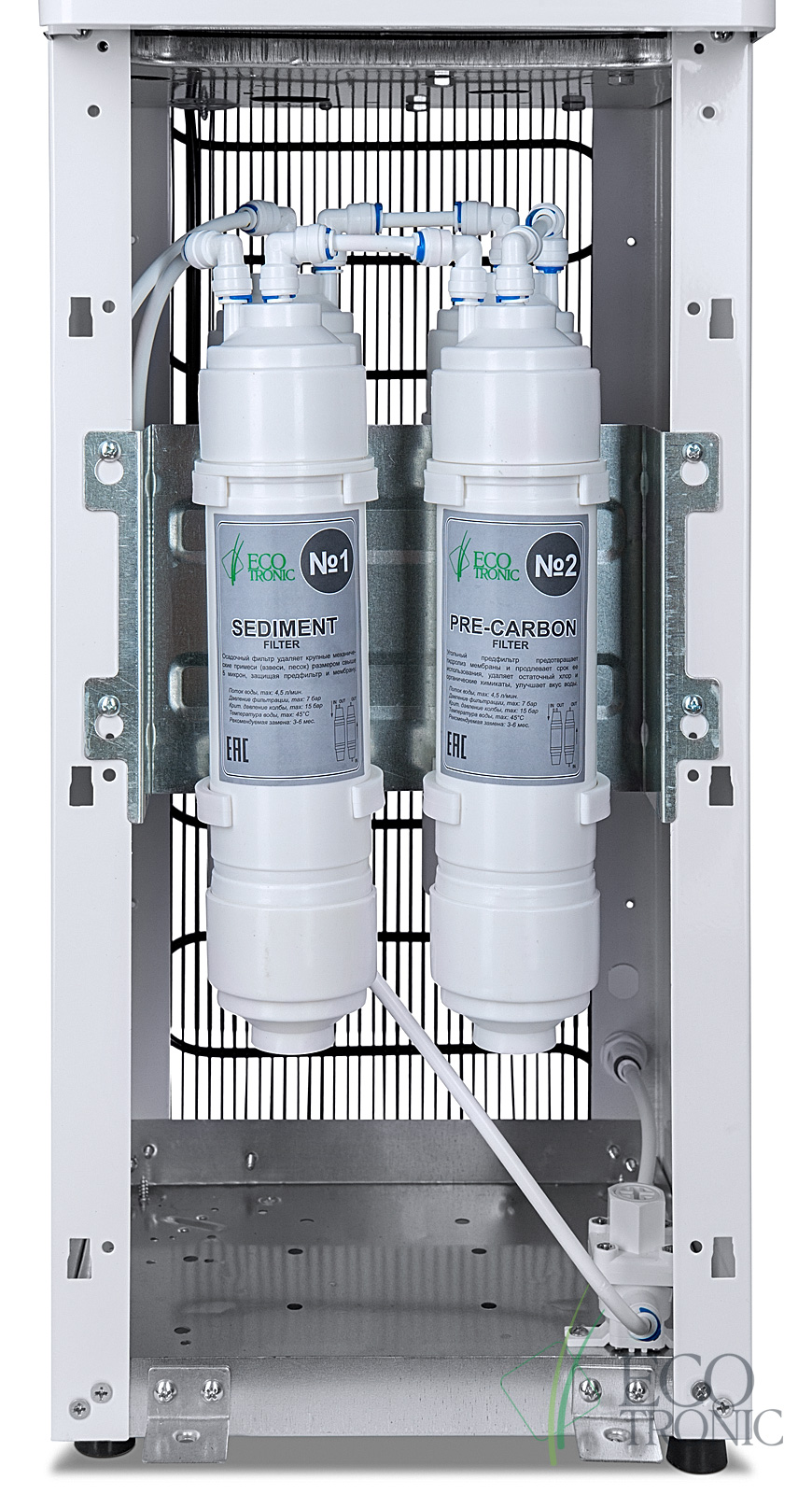 Пурифайер Ecotronic M40-U4L black+silver с ультрафильтрацией. 4-х ступенчатая система очистки на основе мембраны UF. Долговечный и практичный цельнотянутый бак холодной воды: поскольку нет сварных швов, меньше вероятность появления ржавчины со временем.