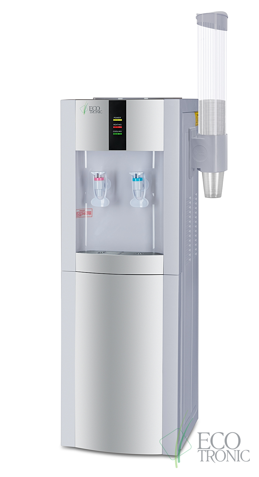 Пурифайер Ecotronic H1-U4L White – стандартная напольная модель с компрессорным охлаждением. 4 ступени фильтрации на основе ультрафильтрационной мембраны, бак горячей воды объемом 1,2 литра, бак холодной воды – 4 л. Производительность аппарата с мощностью около 500 Вт позволяет обеспечивать питьевой водой нужной температуры небольшой коллектив (до 10 человек).