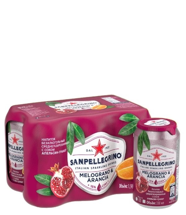 San Pellegrino «Гранат-апельсин» – газированный сокосодержащий напиток от итальянского бренда отлично подходит для повседневных трапез, праздничных приемов и приготовления коктейлей. Сок выжимается из спелых сицилийских фруктов и смешивается с минеральной водой природной газации из известного экологически чистого источника Val Brembana Сан-Пеллегрино-Терме. Такое сочетание делает её отличной альтернативой сладким и приторным газировкам с консервантами и усилителями вкуса.